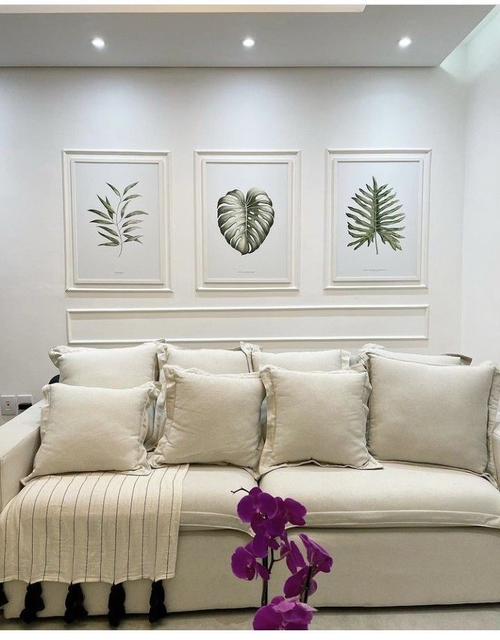 Sala de estar: atrás do sofá, pode compor uma parede elegante com espelhos, quadros ou arandelas.